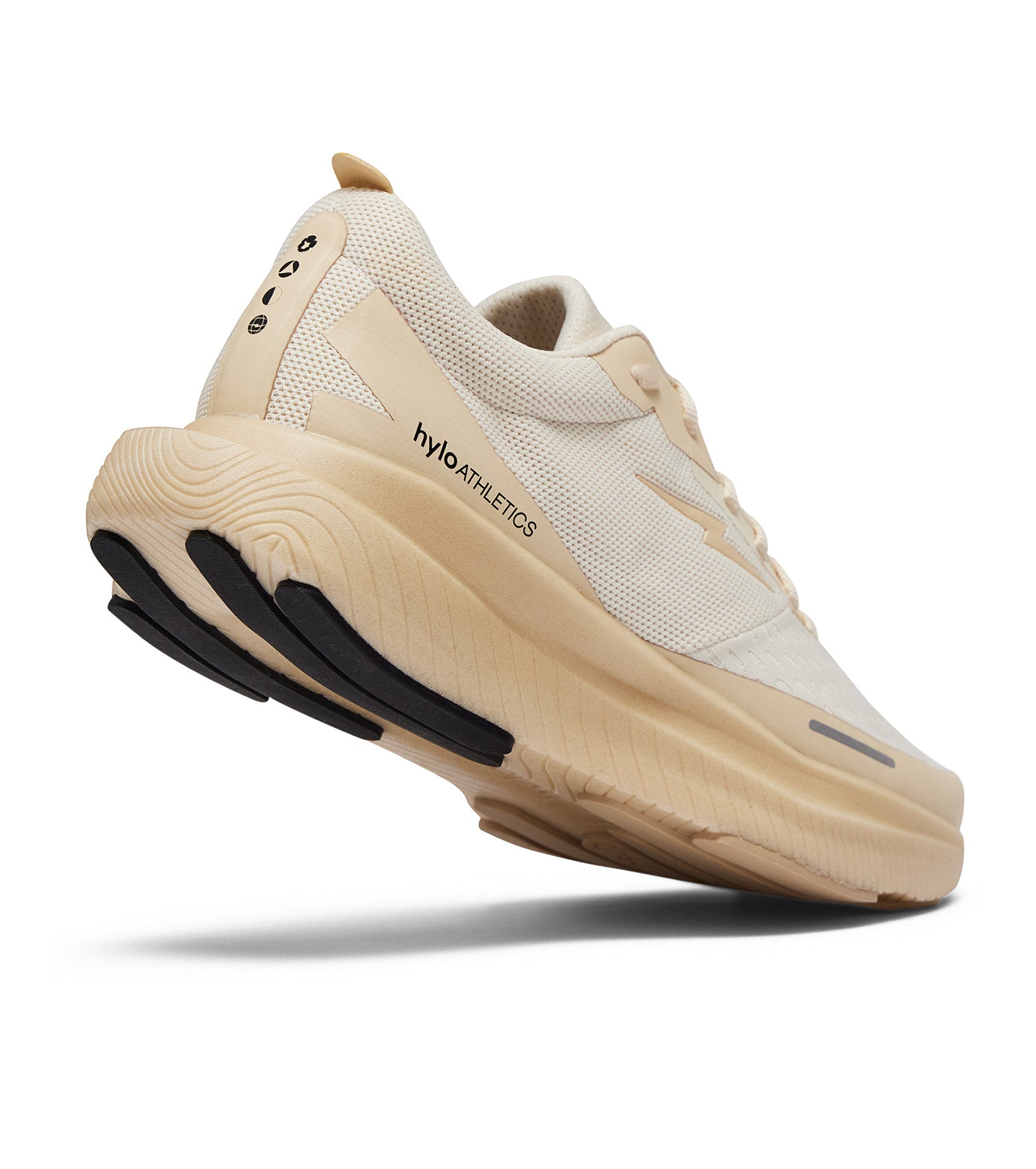 - Outsole: Inspired by Formula 1 tyres and their ability to displace water and increase traction, the cutouts between the rubber pods reduce weight and increase ground contact when wet. Made with 60% natural rubber, 2.5mm thick.